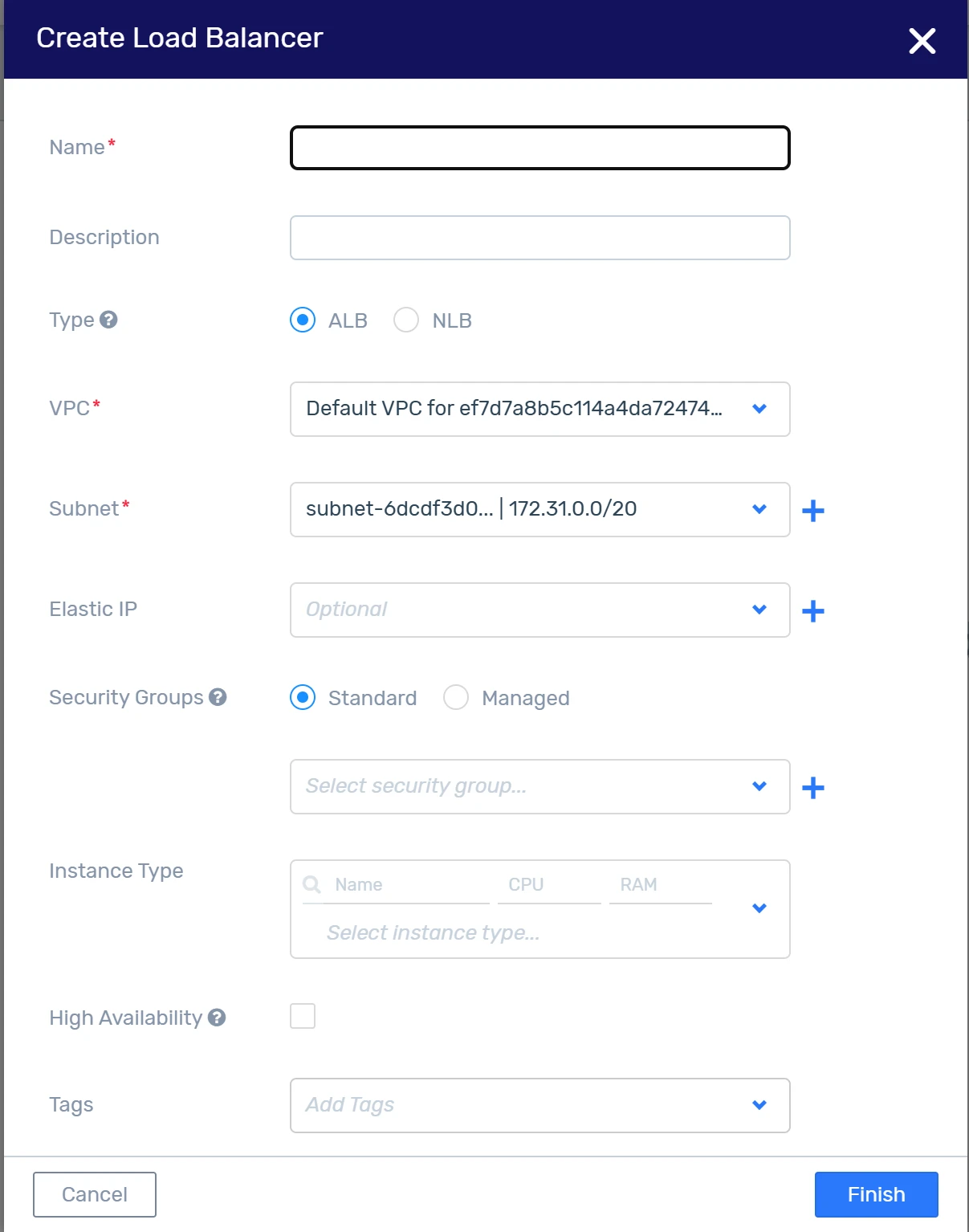 High Availability: Check or uncheck the high availability option. When selected, additional load balancers will be created for failover to automatically replace a failed load balancer.
