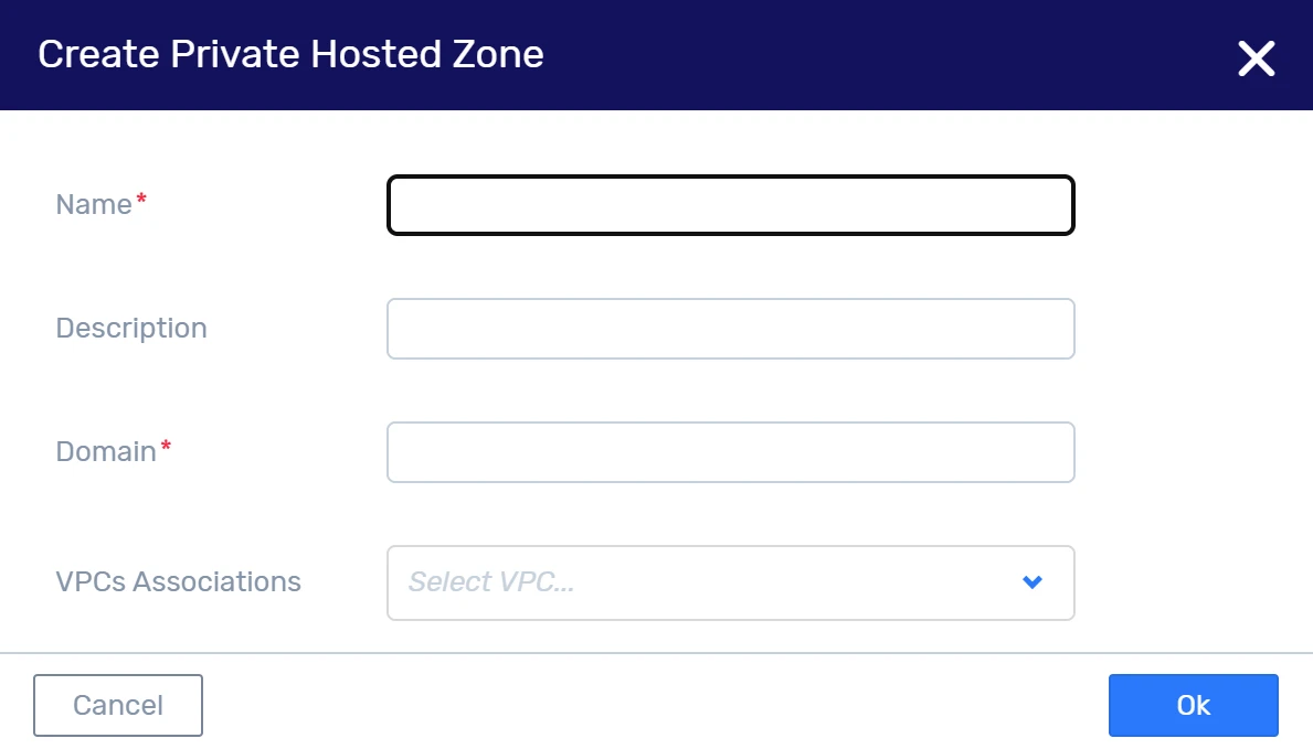 • VPC Associations — VPCs that will be associated with the private hosted zone.