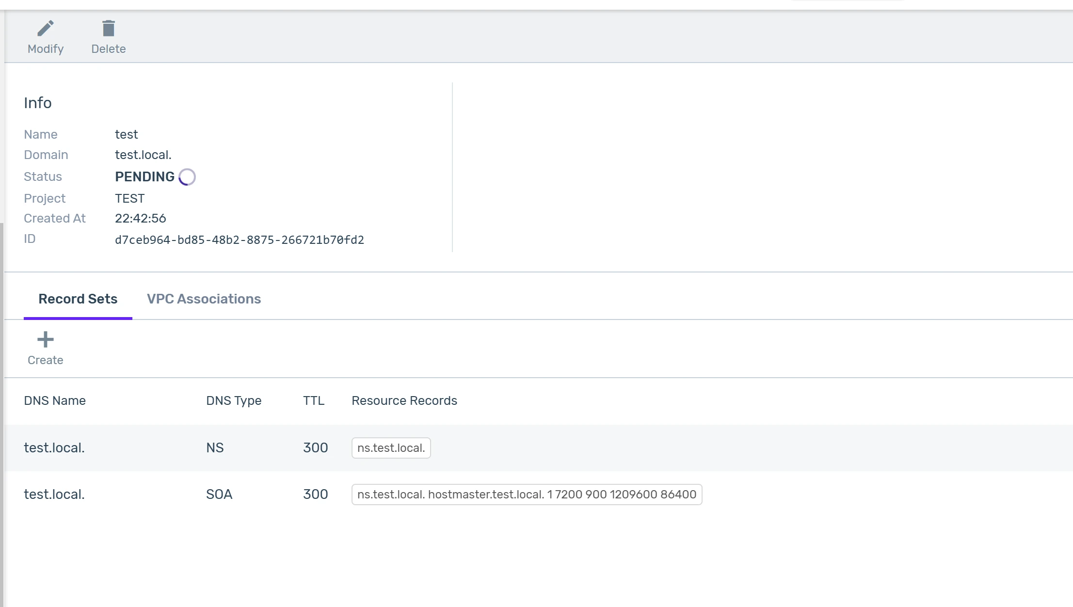 After the private hosted zone is created, it will appear in the list of private hosted zones under Networking > Private Hosted Zone. The following operations can be performed by selecting the private hosted zone from the list and clicking on the corresponding icon or tab.