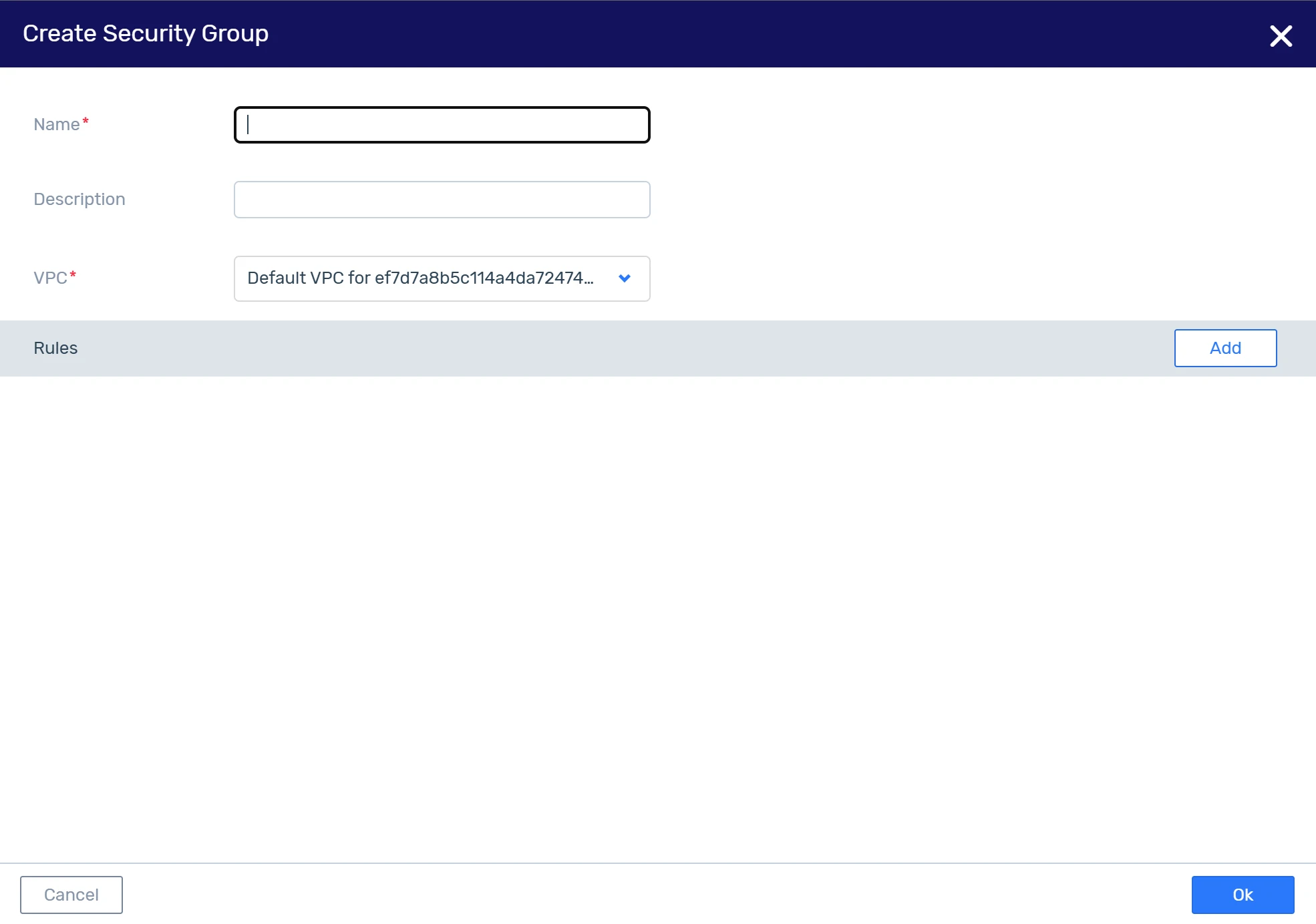 Go to Network > Security Groups. Click Create on the top toolbar.