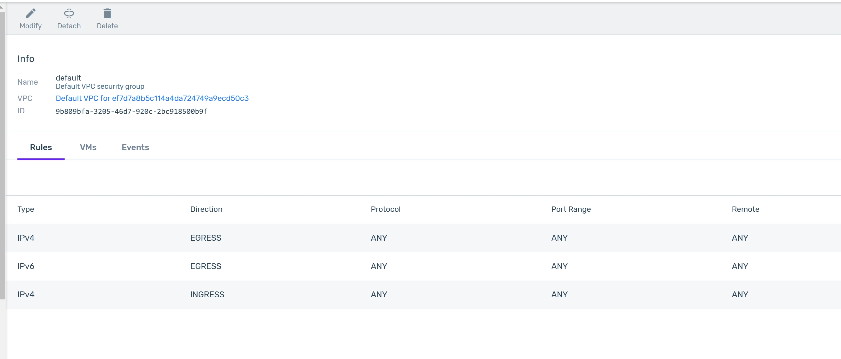 • Virtual Machines — View virtual machine instances associated with the selected security group.