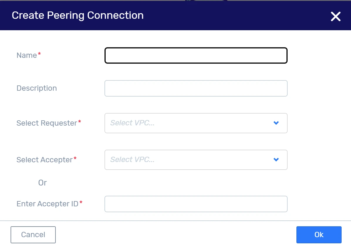 - On the top toolbar, click Peer VPC and fill in the following fields:
