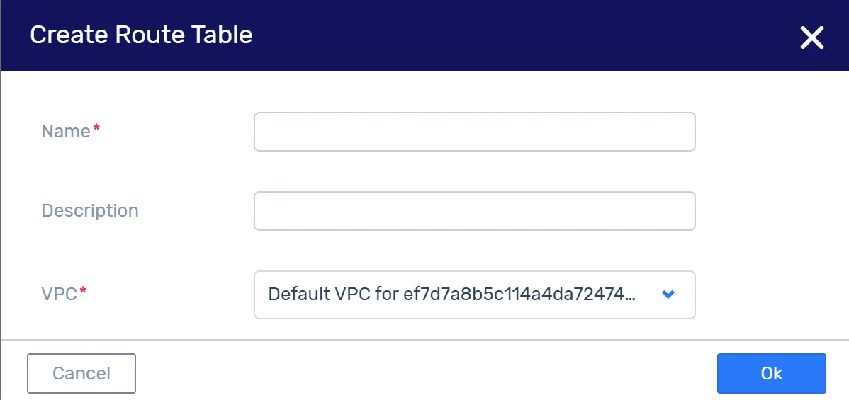 Select the new routing table from the displayed list, and on the bottom toolbar, select the Routes tab and click Create.