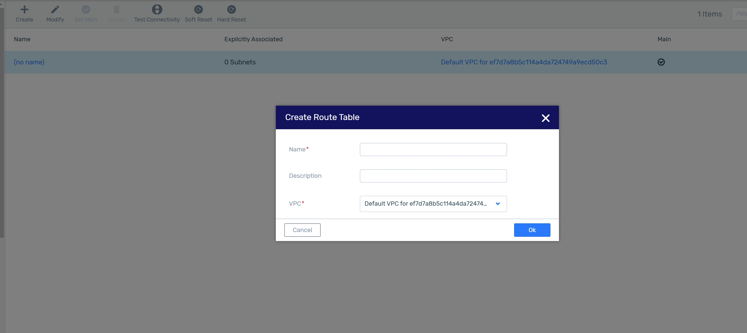 After creating the route table, it will appear in the list of route tables in the Networking > Route Tables view. The following operations can be performed by selecting the route table from the list and clicking the appropriate icon.