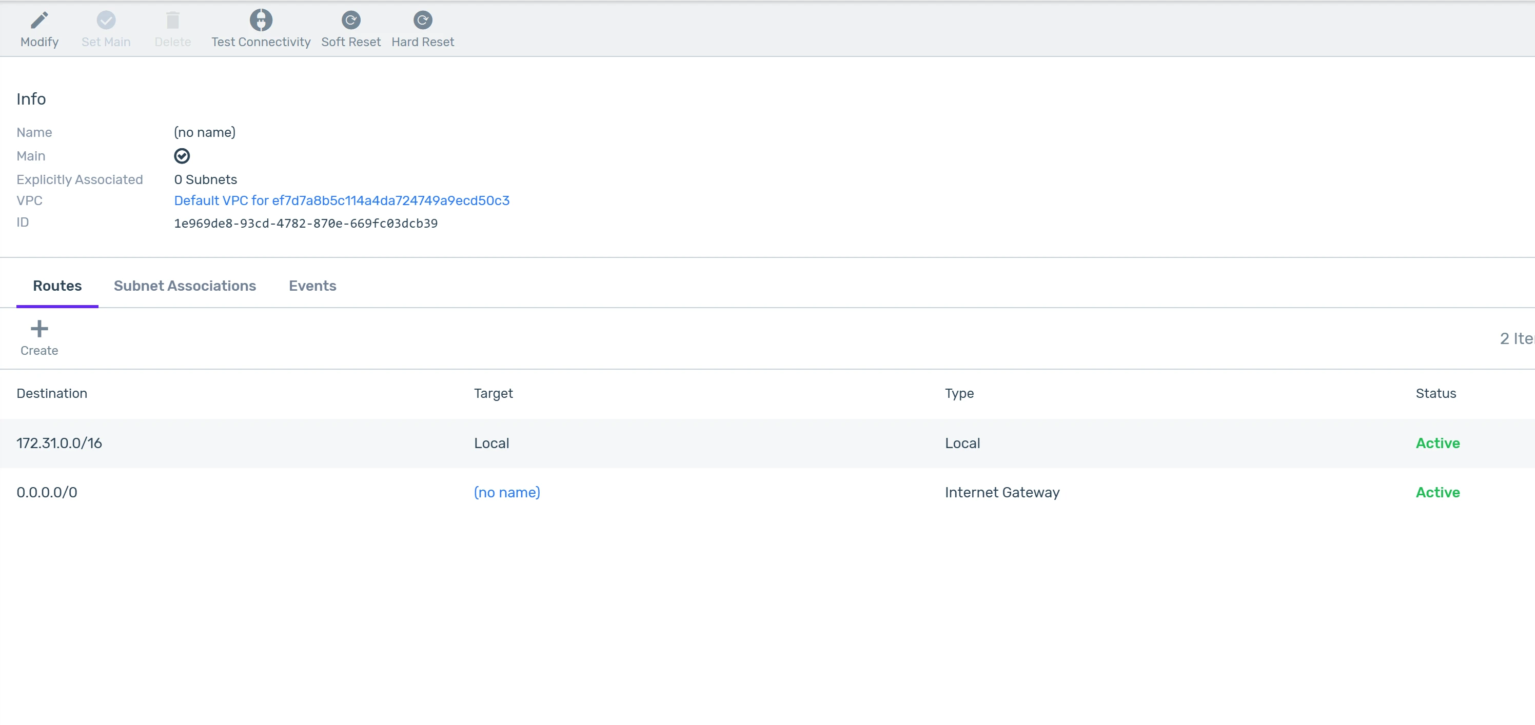 - Set as Main Table — set the routing table as the main table for the VPC, replacing the previous default table.